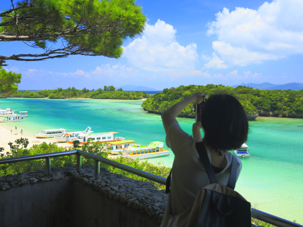 すぐそばの展望台からは、川平湾の外側と内側をぐるりと望めるので、見事なブルーのグラデーションを存分に満喫できます!いろいろなアングルで撮影を楽しみましょう。