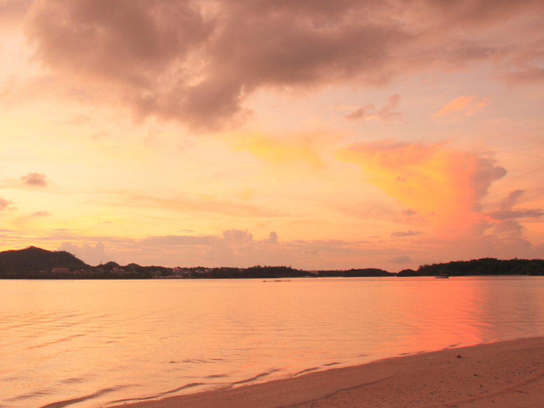 夕景もとても美しい川平湾。海面が夕焼けに染まっていく様子は、忘れられない思い出になるはず。