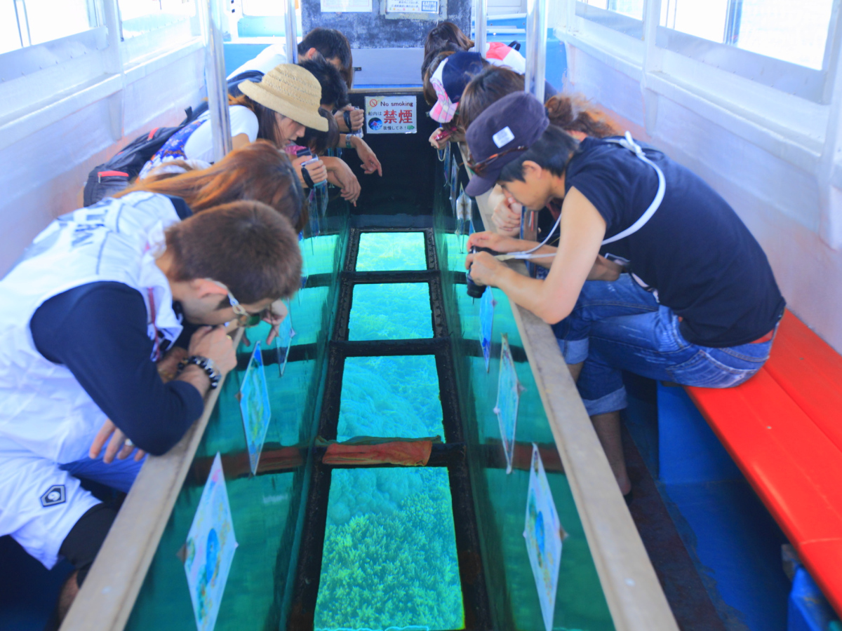 そのほか、砂浜から乗船するグラスボートも定番の楽しみ方。船底のガラス越しにサンゴの群生や色鮮やかな魚を見ることができ、服を着たまま参加できるので、ファミリーで気軽に楽しめます。