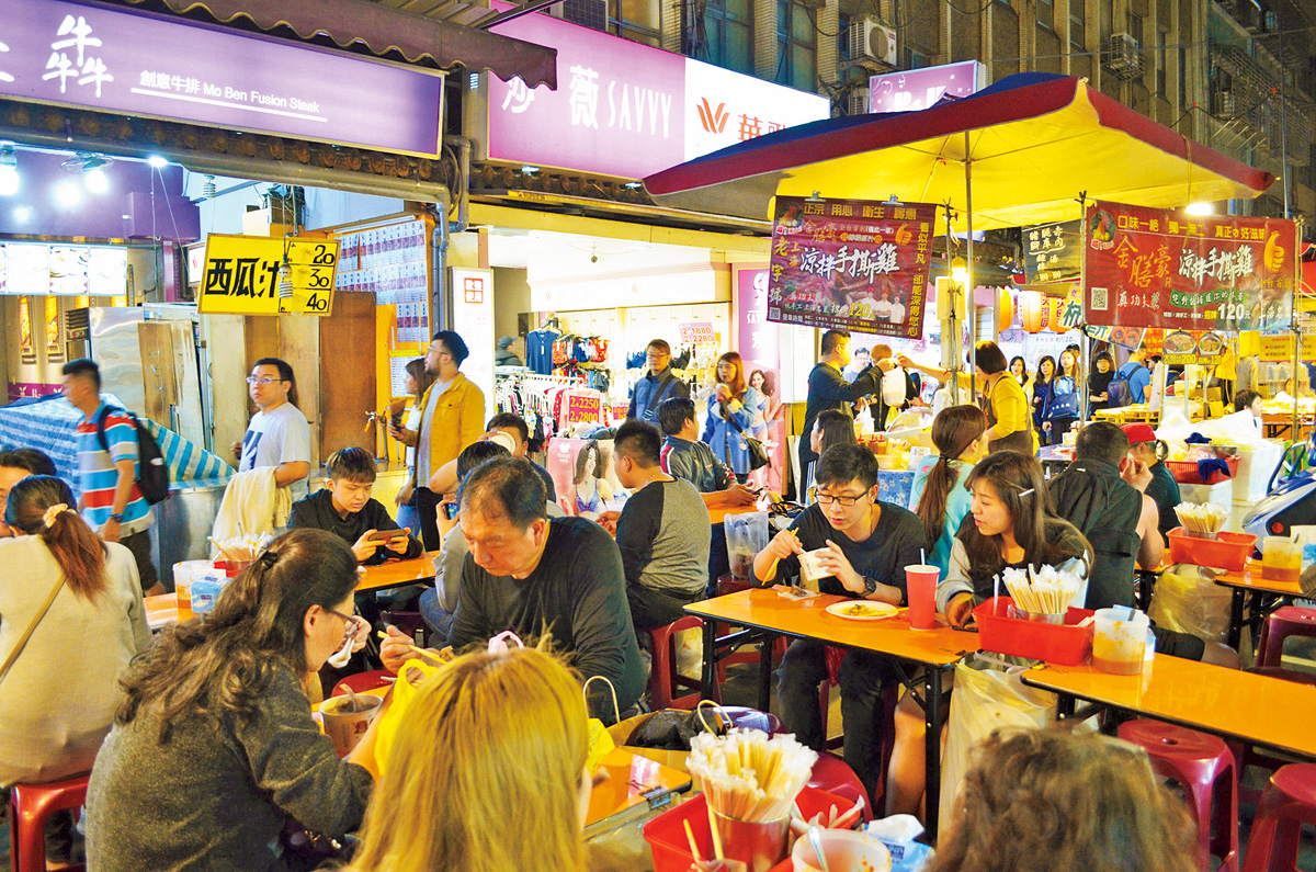 台北郊外にある松山慈祐宮の門前約600mに延びる饒河街夜市。B 級グルメ屋台をはじめ、小物・雑貨の露店や占いブースなどが軒を連ねていて、ライトアップに気分も上がります。1 本道なので、迷ったりする心配はなし!通りの中央に席があったり、混んでいたりで、両脇のお店を一度にチェックするのは難しいので、往復して楽しむのがコツ。