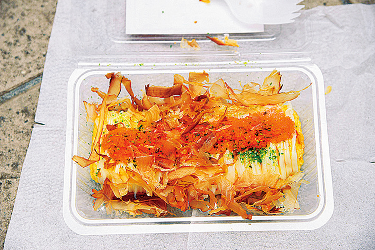 甘めのマヨネーズがかかったふわふわ食感の玉子焼NT$75。トッピングにトビコもたっぷりのっています。