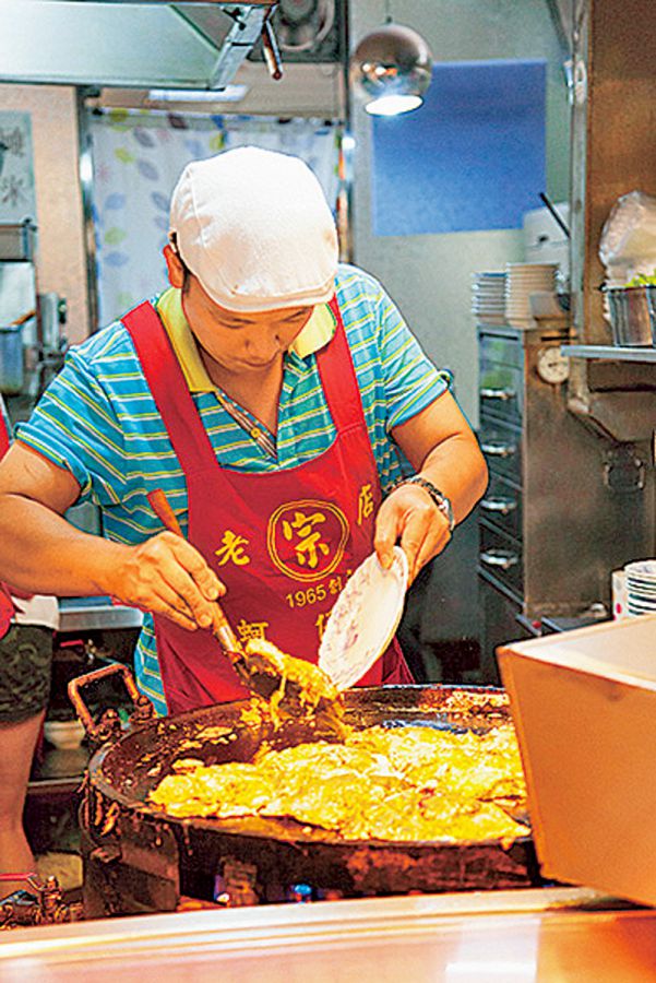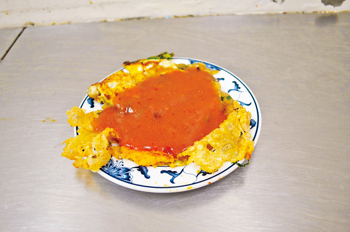 外はカリカリ、中はプルプルの具がたくさんはいったカキオムレツNT$70 。屋台の隣にテーブル席があるので落ち着いて食べられます。