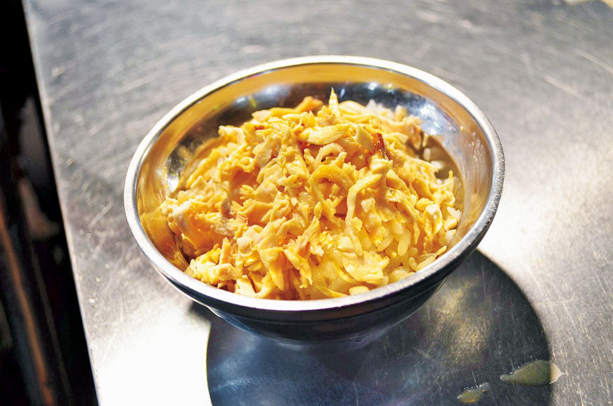 やわらかくほぐした鶏肉に、甘めのタレをかけた絶品ご飯NT$30。