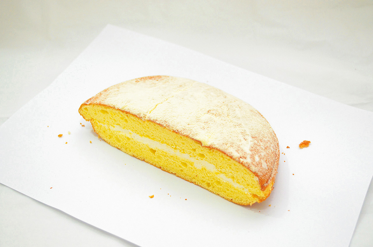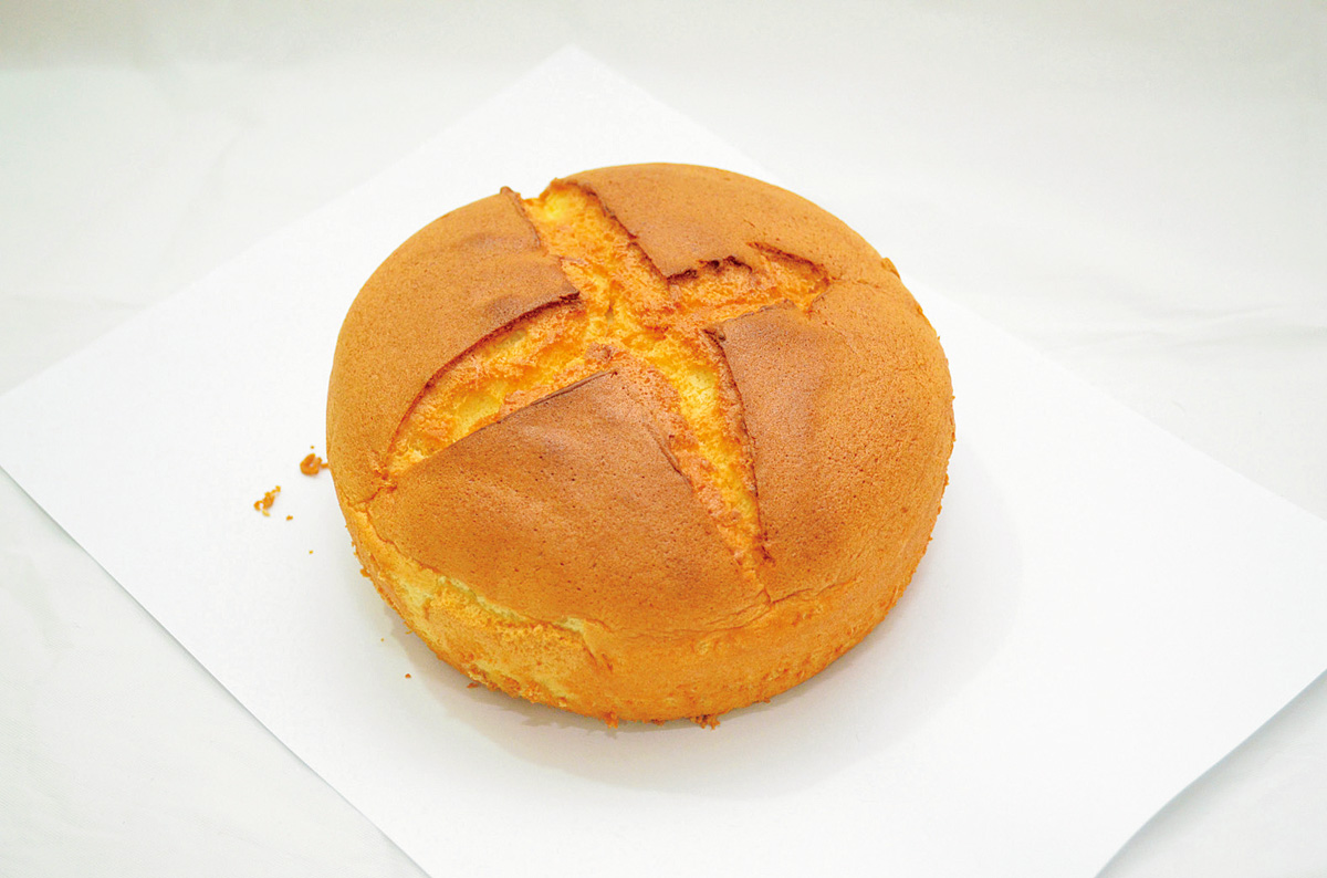 片方を持つと自重でちぎれそうなほど、ふわふわのシフォンケーキNT$50。卵の香りが濃厚!