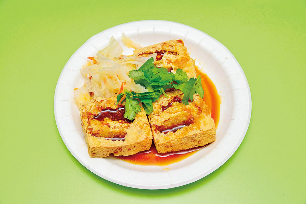 雅口美食の天香臭豆腐(炸)(NT$50)はにおいが気にならない人はチャレンジしたい臭豆腐。タレが絶妙にマッチしています。