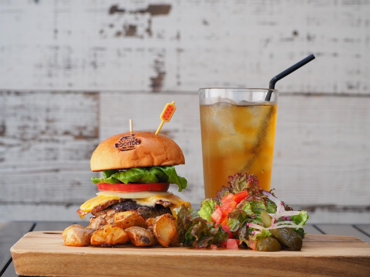 オススメは、「鎌倉バーガープレートセット」(1900円)。自家製のスモークベーコンに、モッツァレラとチェダーのダブルチーズを合わせたプレミアムバーガーです。サーブされた瞬間、ボリューミーな見た目に驚くこと間違いなし。もちろん、味わいも一級品です。