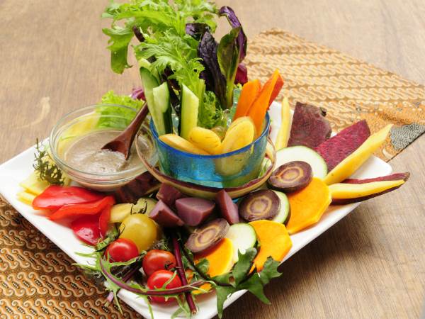 南国気分お食事コース(2160円)は、野菜がたっぷりと盛り付けられたバーニャカウダ、自家製レバーペースト、ローストポークなど、全6品のメニューを味わえるコース。南国テイストの料理を前にして、思わずテンションがアップするはず。コストパフォーマンス抜群なため、気軽に利用できる点も魅力です。
