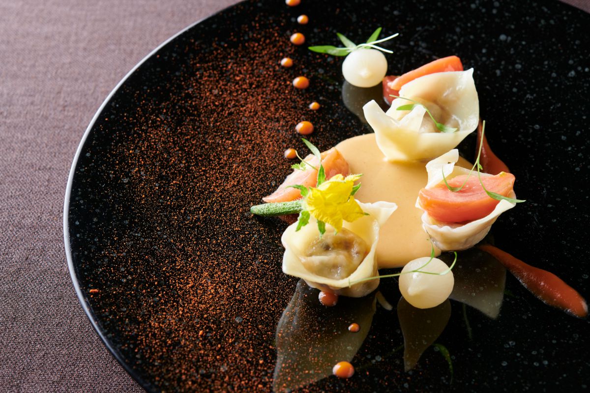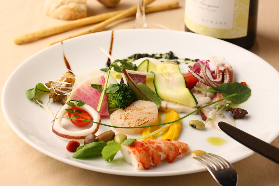 ぜひ味わっていただきたいのが、前菜とメイン、デザートで構成されたディナー『人気のプリフィクス《3皿コース》(5940円)』。「プリフィクス」とは、複数用意されたメニューのなかから、好みのものを選ぶスタイル。本コースでは、前菜、メイン、デザートのすべてにおいて、目にも楽しいメニューが豊富に用意されており、自分好みのコース料理に仕立てることができます。