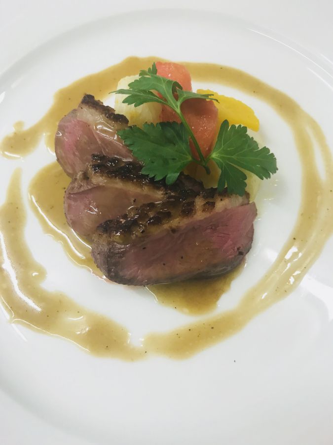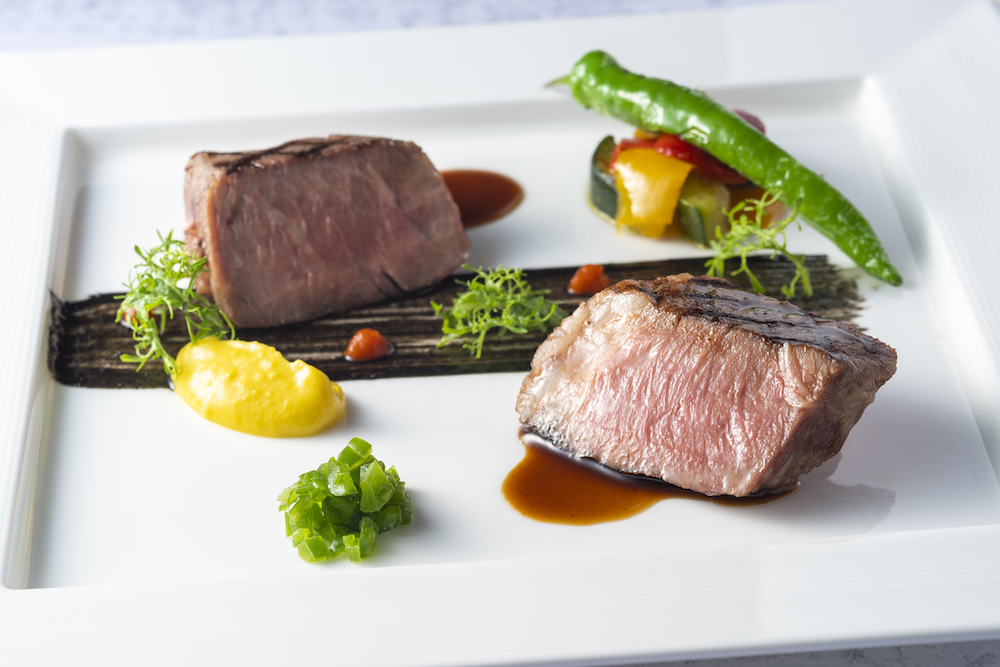 料理は京都の食材を使った“京フレンチ”。夏なら鱧や鮎といった旬の食材を使った料理を、手間と時間をかけて作るソースやスープと合わせて提供します。2019年9月末までの川床なら、スズキのソテーやイベリコ豚のグリルなど、メインデッシュがダブルで付くディナーコース8500円(税・サ別)がお得です。