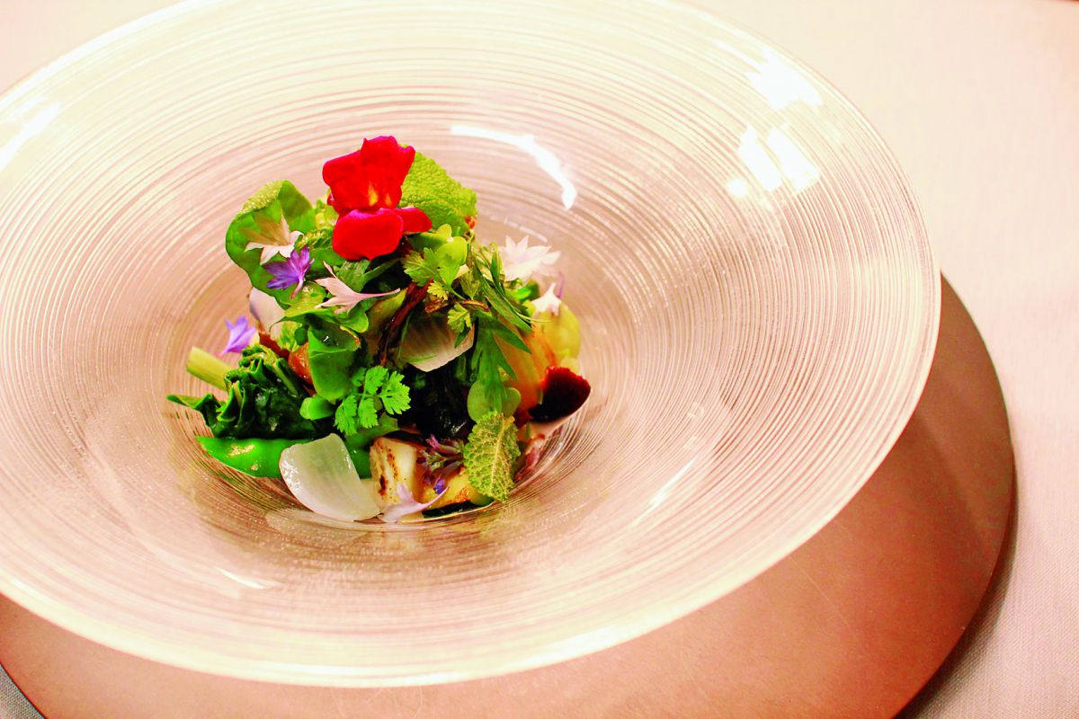 メニューは季節ごとに変わるコースのみ。一皿一皿が食べるのがもったいない芸術品のように盛り付けらえています。イタリア・フランス・日本の料理をベースに、国の枠を超えて世界各国のエッセンスを取り入れているため、初めて出合う味も多く、驚きの連続です。ランチならパスタや魚・肉料理など8品がついたコースが4860円~、ディナーは9810円~。野菜尽くしの菜園コース5400円(ランチのみ)もこの店ならではのコースです。
