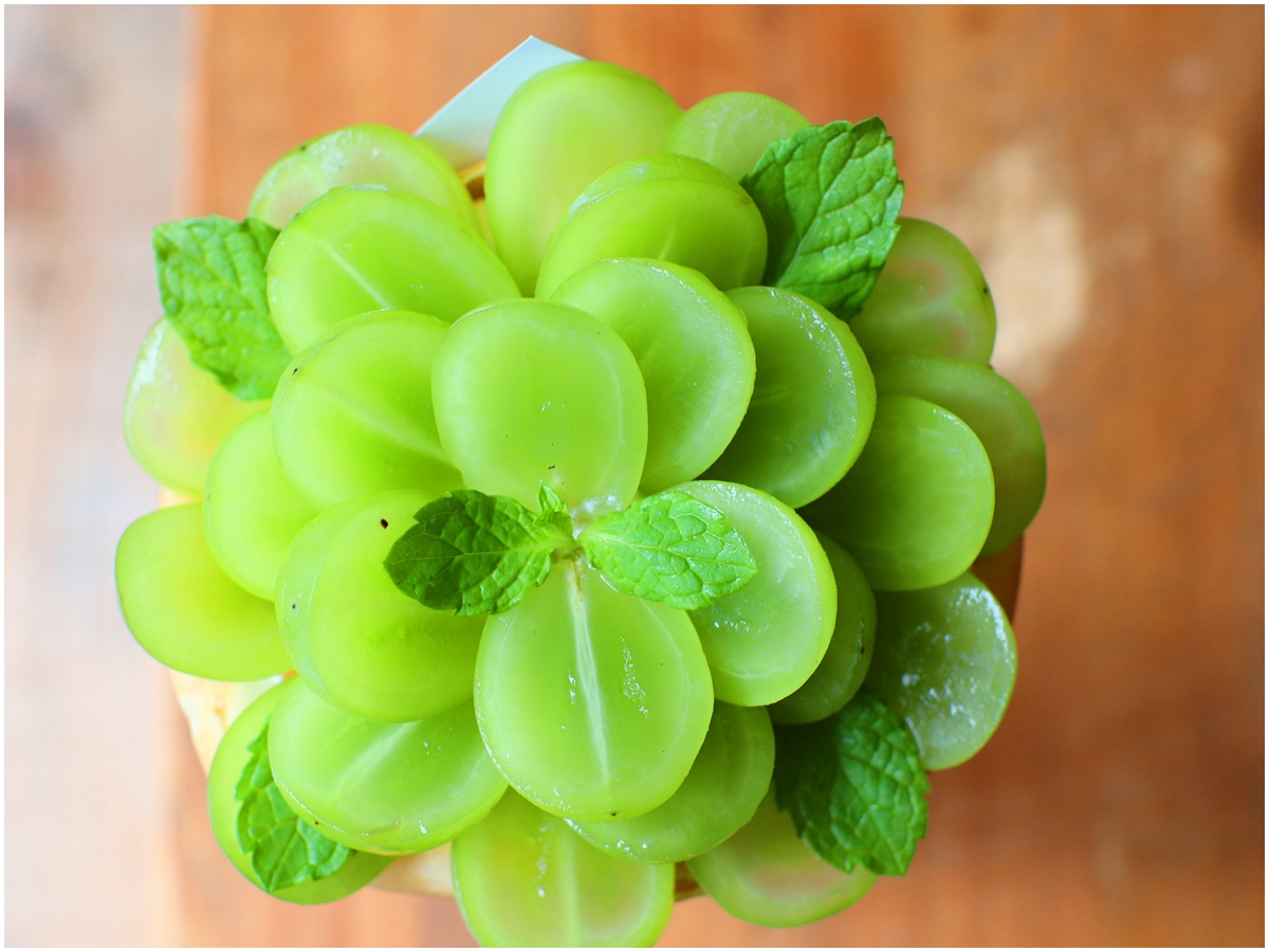 9月前半は「三枝農園」のシャインマスカット、9月後半は長野県上田市「ムクノモリ果樹園」のシャインマスカットを使用。