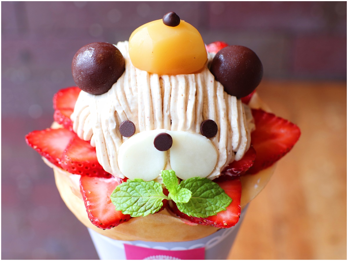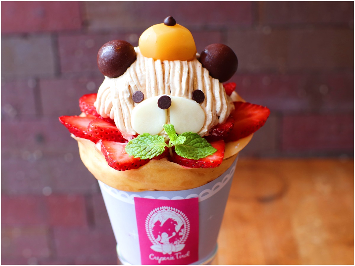 そして9月限定3つ目のクレープは、今の時期が旬のいちご「なつおとめ」と旬の栗をアレンジしたクレープ「ストロベリー&マロンベア」1600円(税込)。