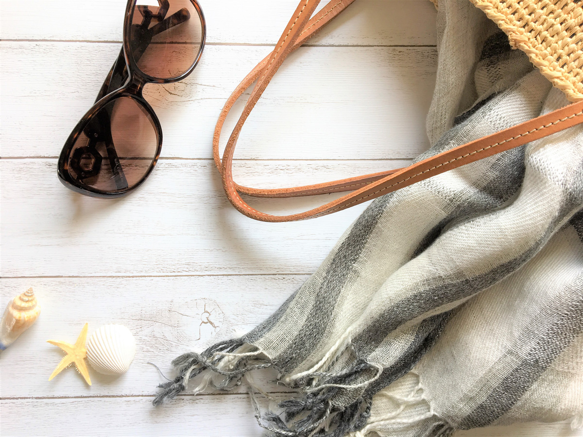 肌寒い時や日差しが気になる時は、ショールを首に巻いたり肩にふんわりとかけたりするのがGOOD。リネンやシルクなど、軽くてかさばらない素材のショールなら、楽に持ち運びできます。持って行って絶対損しない、旅慣れ女子の必須アイテムといえますね!