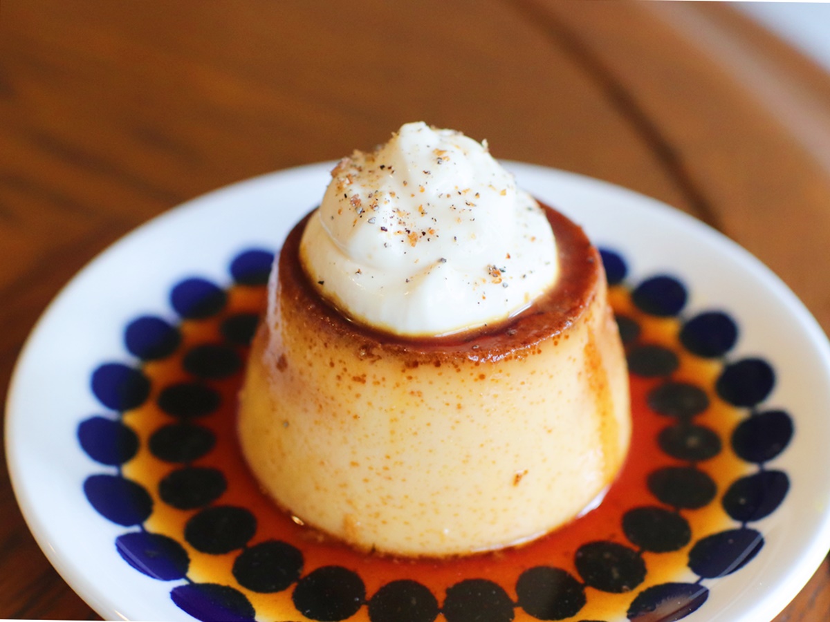 プリンの上のクリームと挽きたてスパイスが、ほかにはないおいしさを生み出す秘密というわけなのです。