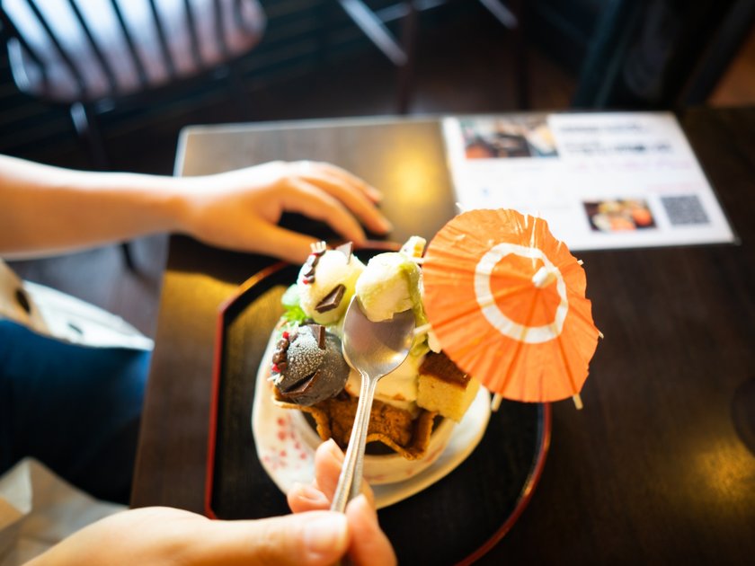 絶対写真に撮りたくなる!広島・尾道名物のわらび餅を使ったキュートな傘つき猫パフェ