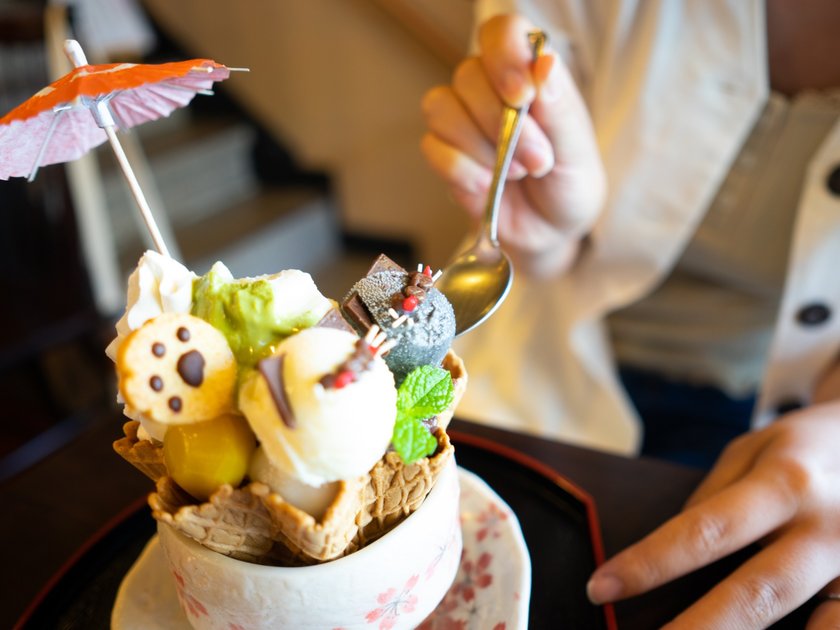そして、とろとろのわらびもちも入っているので、アイスとわらびもちの両方を楽しみたいという方には、こちらの猫パフェがおすすめです。ぜひ「尾道さくら茶屋」で美味しい甘味を食べて、旅の疲れを癒してくださいね。