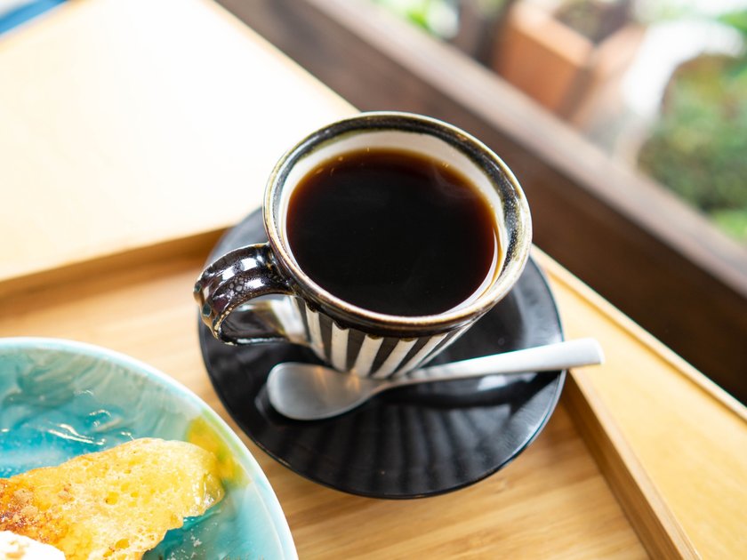 セットのコーヒーは、お菓子との相性が良いというダークブレンドがおすすめ。コーヒーならではの苦味はしっかりありつつ、すっきりとした飲み口です。フレンチトーストの甘みとのバランスがちょうど良く、さわやかな朝にぴったりの一杯です!
