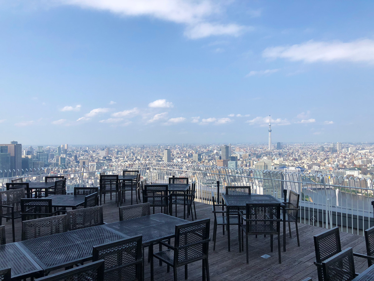 テラス席は裏口から向かうため、隠れスポットに来たような気分になれるのも、特別感があります。扉を開ければ六本木ヒルズやスカイツリーなど東京のランドマークと表参道の大空が出迎えてくれますよ。