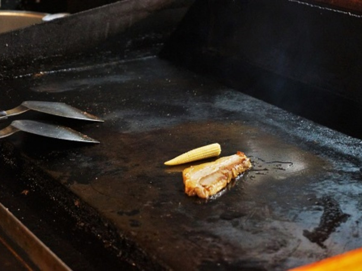 チャーシューやヤングコーンは、鉄板で1つ1つ丁寧に焼いてからトッピング。鉄板で焼くことで、チャーシューはトロトロに。ヤングコーンはサクサク食感が増すんです!