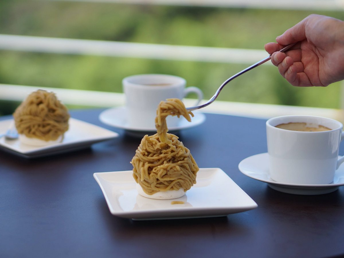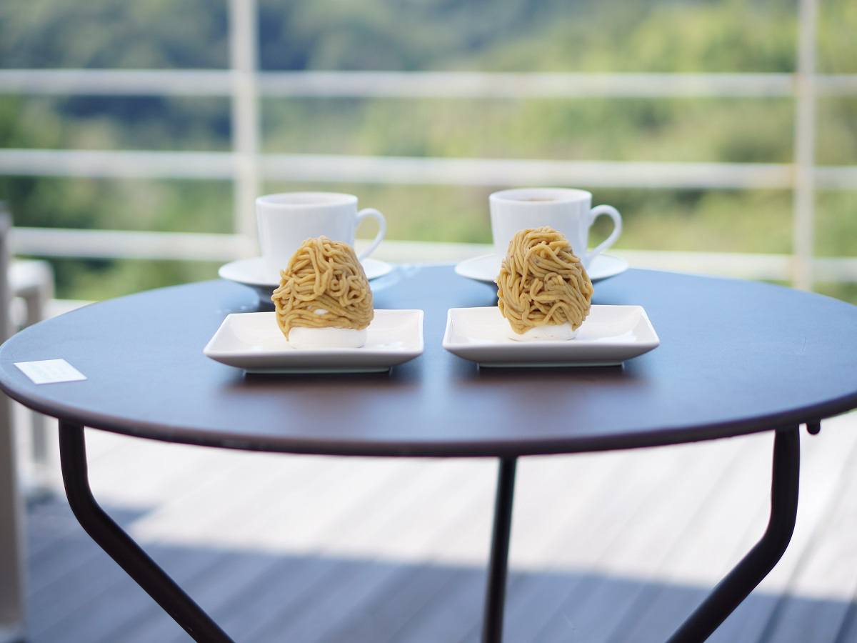 絶景を見渡せるテラスで絶品のモンブランをいただきながら、日常を忘れてのんびりできるカフェ。