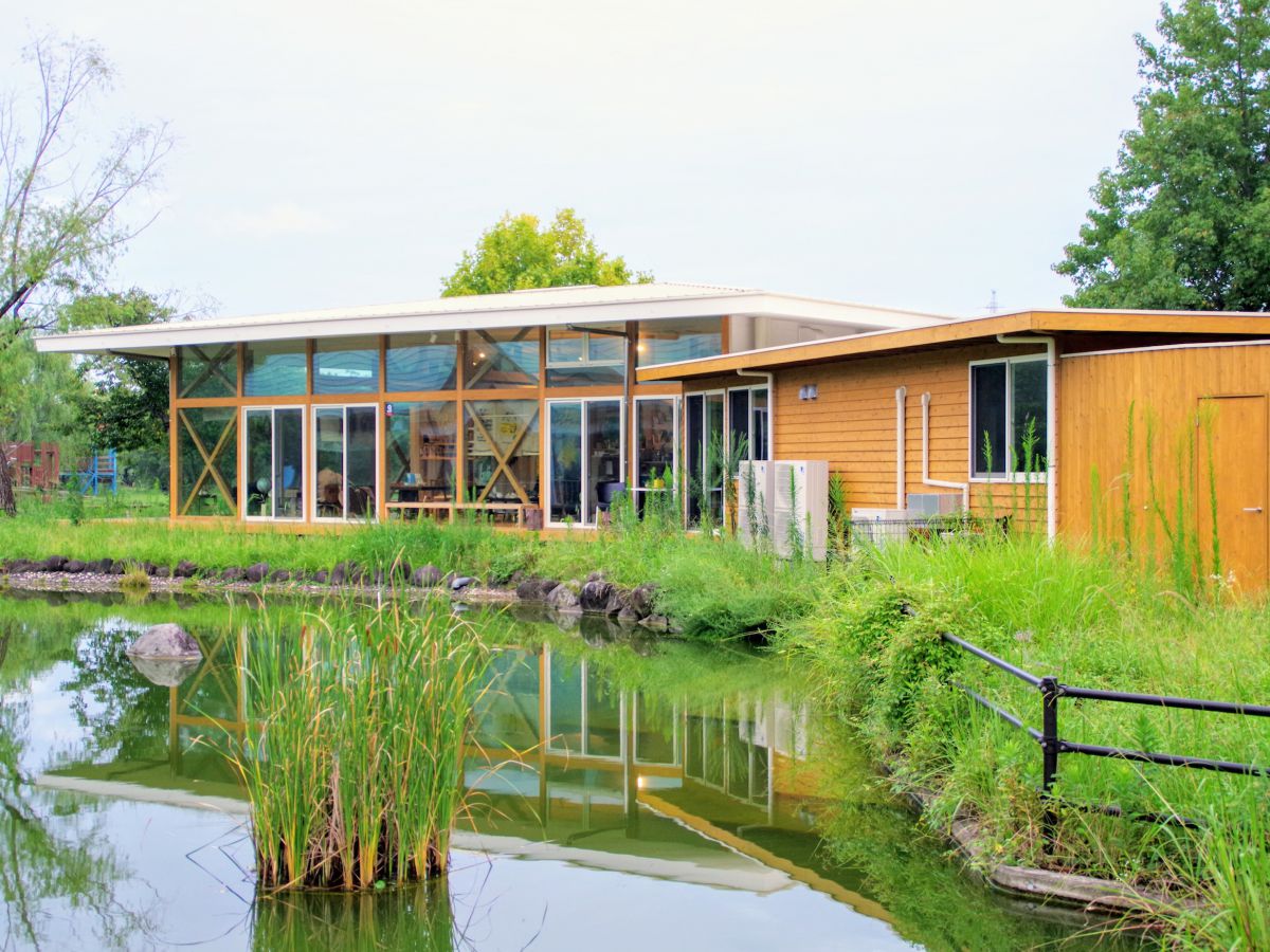 駐車場から150歩、鯉が泳ぐ池のほとりにあるカフェ