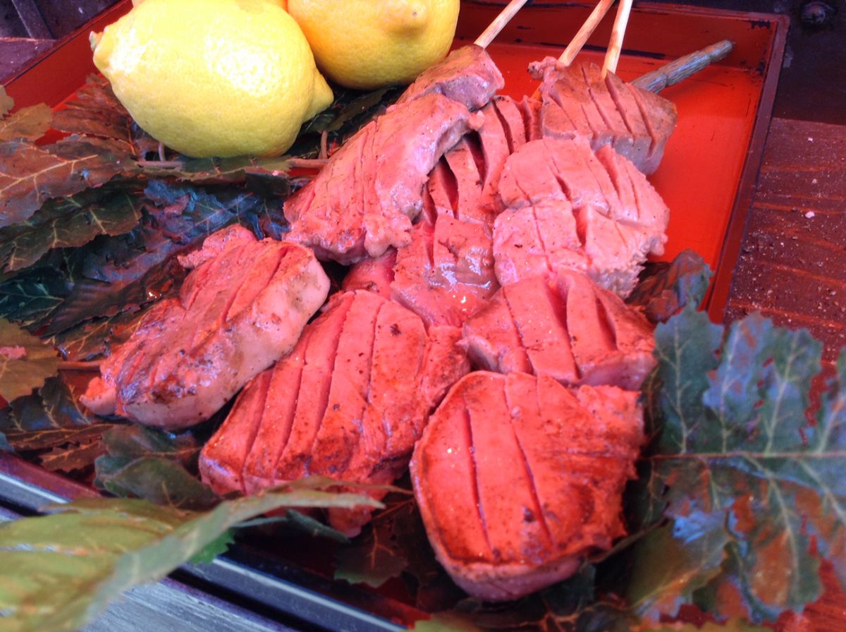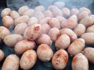 台湾夜市で行列ができる「一口香腸」は、ひと口大のソーセージ。焦げ目がこんがりついてジューシー!