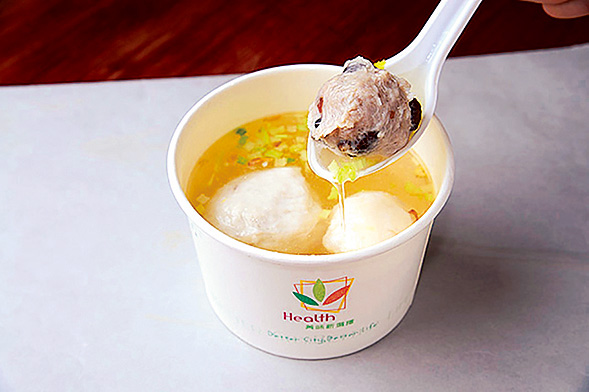 行列店での必食メニューは魚のつみれが入った魚丸湯。ほかに魚のすり身で豚肉あんを包んだ団子入りスープなど、数種類が揃っています。