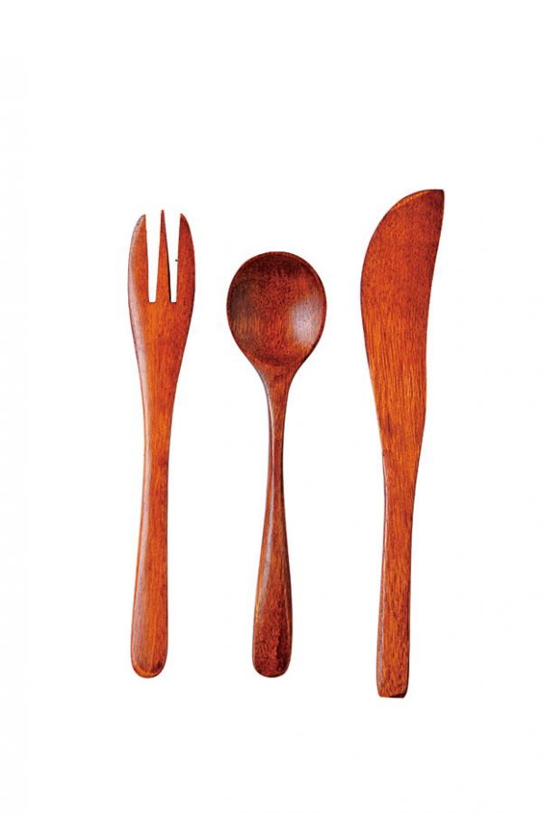木製カトラリー(NT$40~)。素材は、丈夫でツヤ感があるナツメ材。シンプルで誰でも使いやすいとのこと。