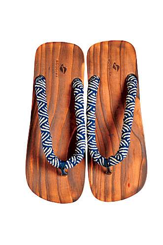 下駄(NT$490~)は松の木目が美しいメンズ用。あえて洋服に合わせるのも◎。