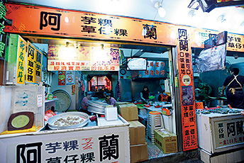 3代目が営む老舗。自慢の一品はもち米を使った伝統的おやつ・草仔粿(草餅)。餡入りのほか、からし菜入りなど軽食に適した甘くないものもラインナップ。