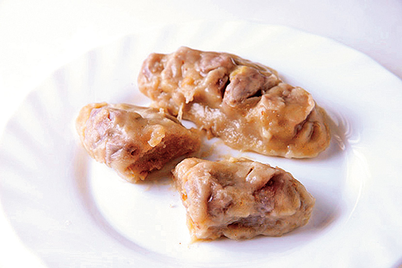 草仔粿(菜脯)(NT$15)は切り干し大根の具が入った草餅。干しエビの香りが食欲をそそります。