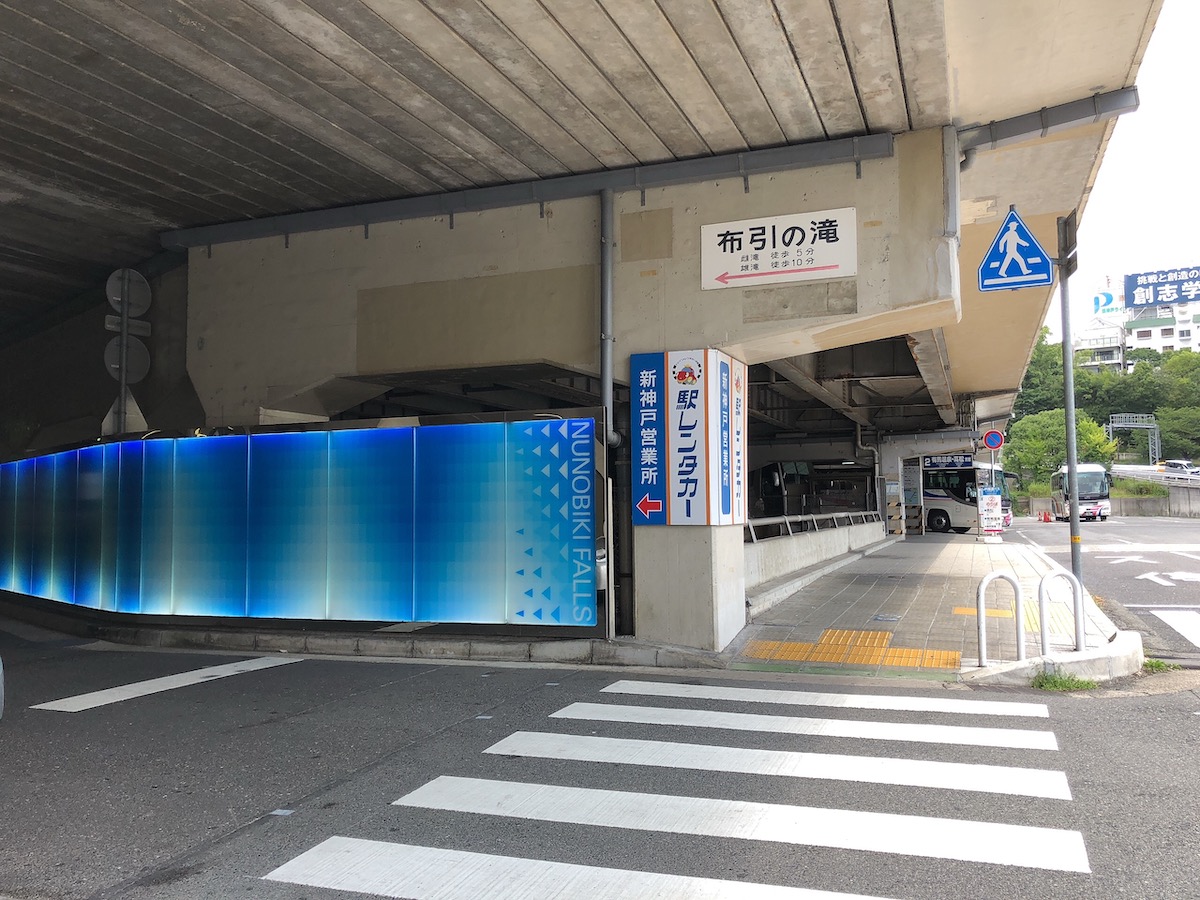 新幹線が発着する「新神戸駅」の1階から外に出ると、「布引の滝」への案内が見えます。ここが、4つの滝から構成される布引の滝を巡る、ハイキング道のスタート地点!駅チカなのも高ポイントです。