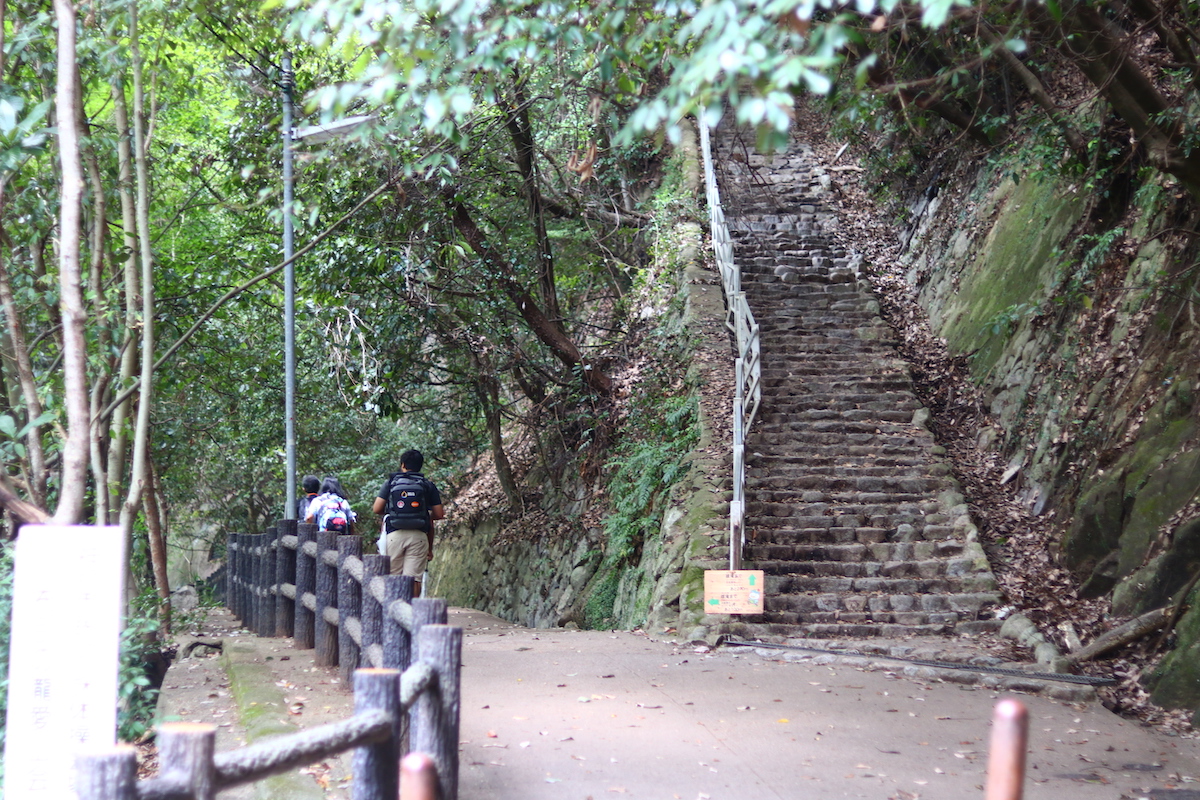 砂子橋からすぐに分岐があり、右の階段を行くと布引の滝いちばんの見どころ「雄滝(おんたき)」へ。左の道を行くと小規模な「雌滝(めんたき)」へと繋がります。まずは雌滝目指してレッツゴー!