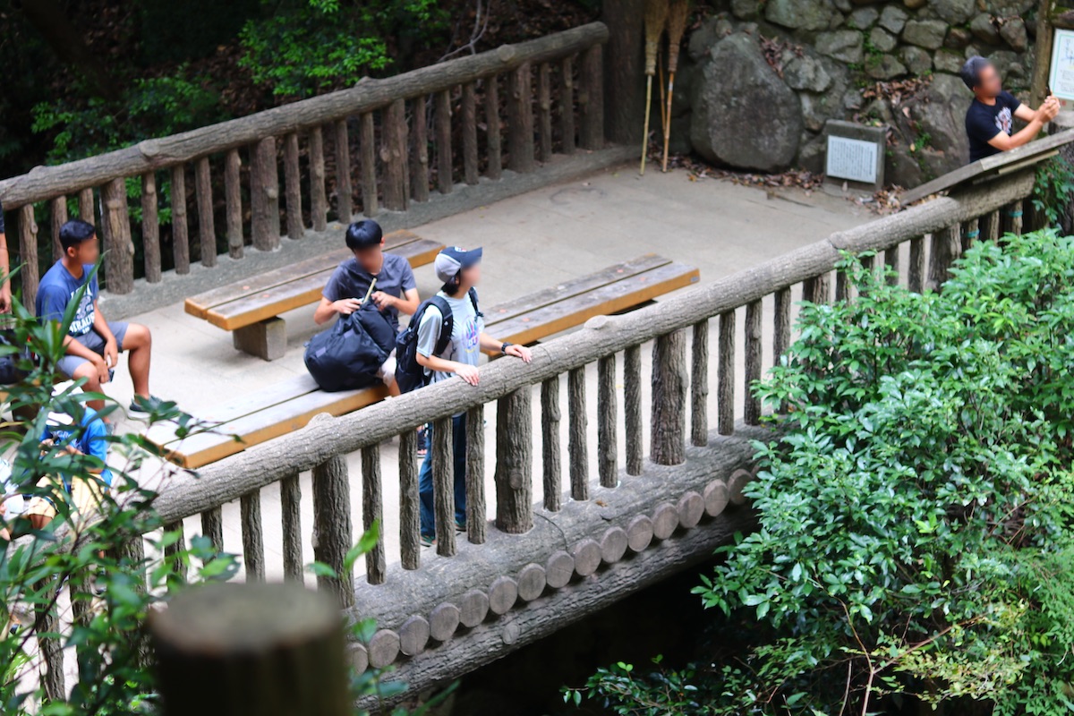 滝の前には鑑賞用の橋が設けられ、ベンチに座ってゆっくり眺めることも可能。ここまで登って来て良かった…! と思えるダイナミックな光景を、存分に堪能しましょう。