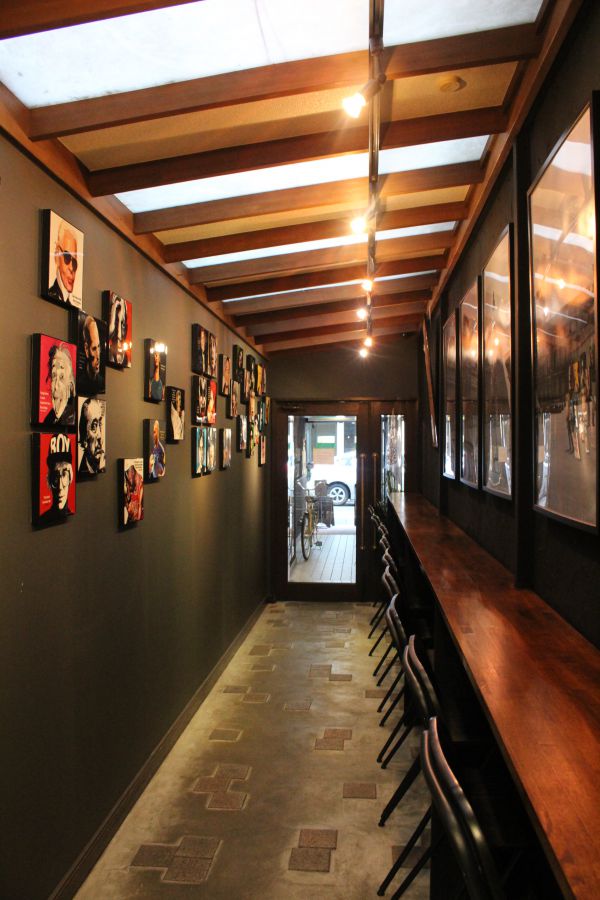 中に入ると、ここがパティスリー?と思うような、モダンでスタイリッシュな空間。イートイン用のカウンター席があり、壁にはポップアート作品やポスターなどが飾られています。「ちょっとユニークな海外の雑貨屋さんのようにしたかった」と話す西原さん。待ち時間があるときも退屈せず、店内を眺めて過ごせます。お店の奥からは、ケーキの焼けるいい匂いが漂ってきます。