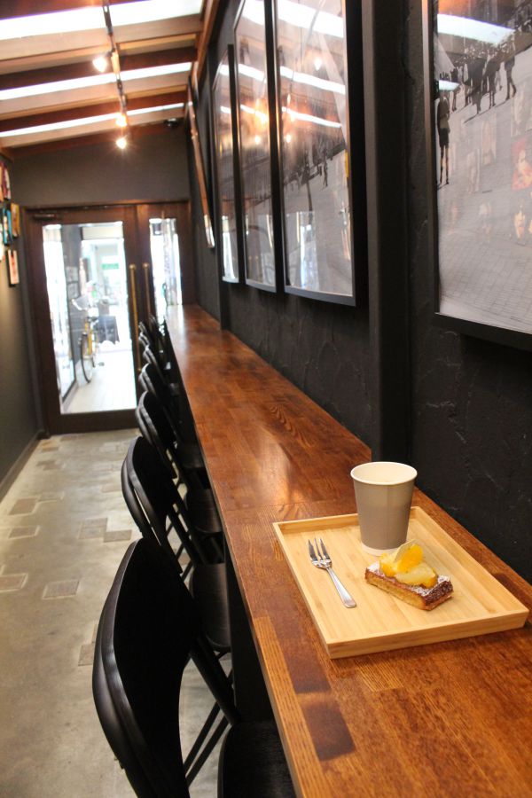 ブレンドコーヒー(300円)とともに、店内でのイートインも可能です。「ナンポルトクワ」とは、フランス語で「なんでもあり」という意味で、型にはまらないお店作りを目指しています。チョコレートケーキにガラムマサラなどのスパイスを使ったり、抹茶のケーキには白あんをたっぷり使い和菓子風に仕上げたりと、シェフの多彩なアイディアがいっぱいです。