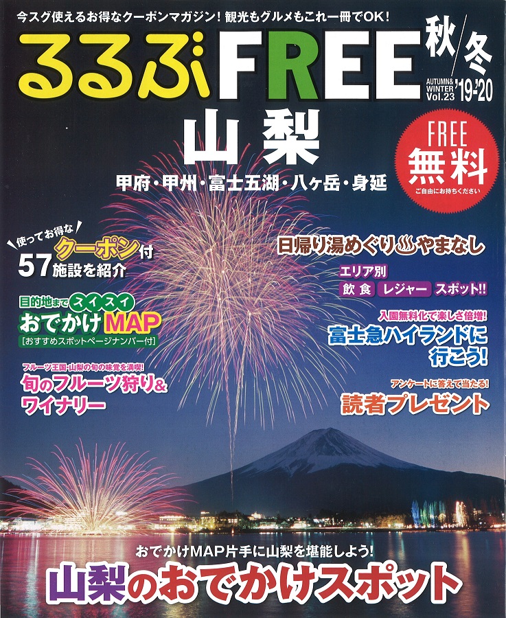 掲載しているお店についてもっと詳しくお知りになりたい方は、配布中の『るるぶ FREE山梨 甲府・甲州・富士五湖・八ヶ岳・身延19-20秋冬』をご覧ください!