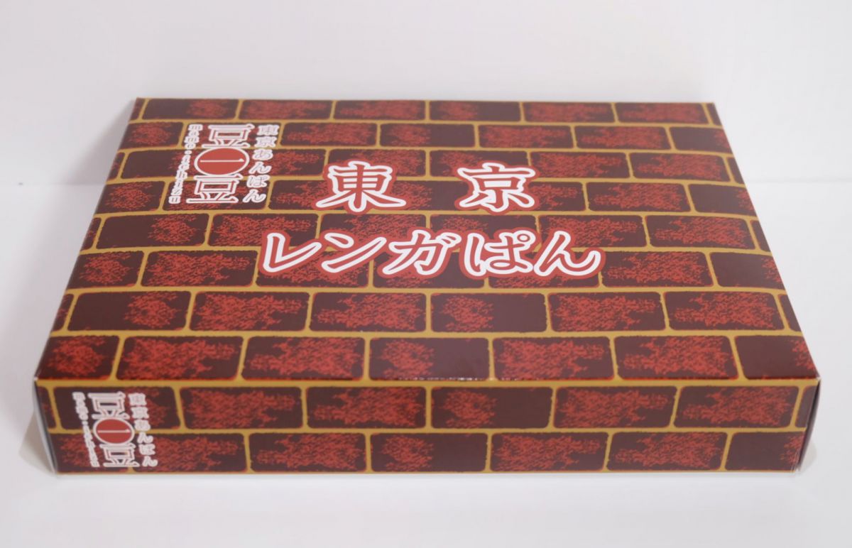それがこちらの東京駅丸の内駅舎の赤レンガをモチーフにした、角型のあんぱん「東京レンガぱん」。箱の方も、ド直球に赤レンガモチーフになっています。