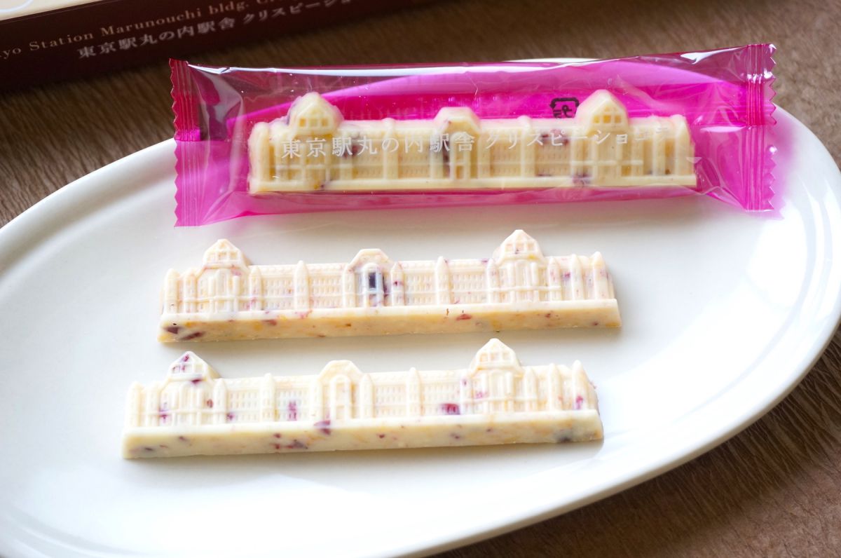 「モロゾフ」の「東京駅丸の内駅舎クリスピーショコラ」は、商品名の通り東京駅丸の内駅舎の形をそのままクリスピーショコラにした東京駅限定のお土産。