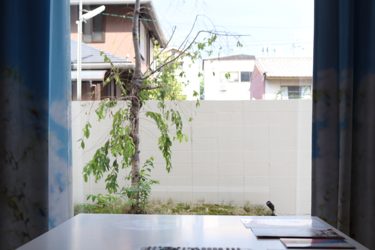窓を開けると庭があり、そこには桜の木が1本植えられています。 春には庭の桜が花開き、壁一面の桜と現実の桜の美しいコントラストが楽しめるという仕掛け。