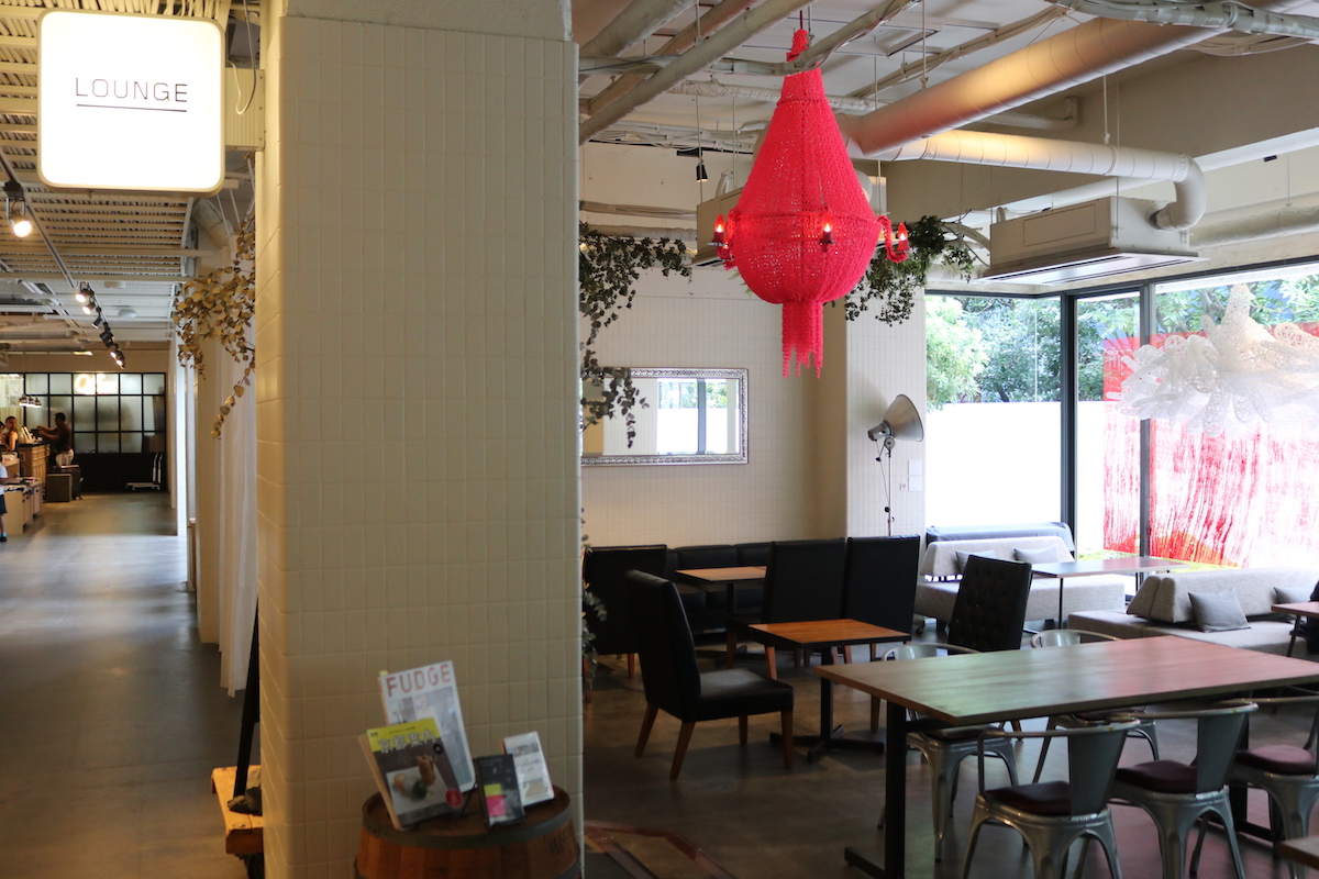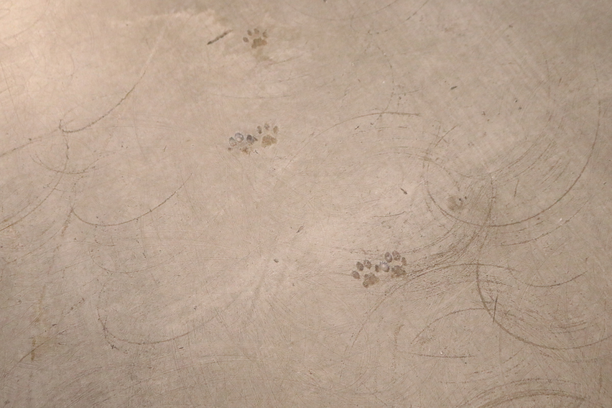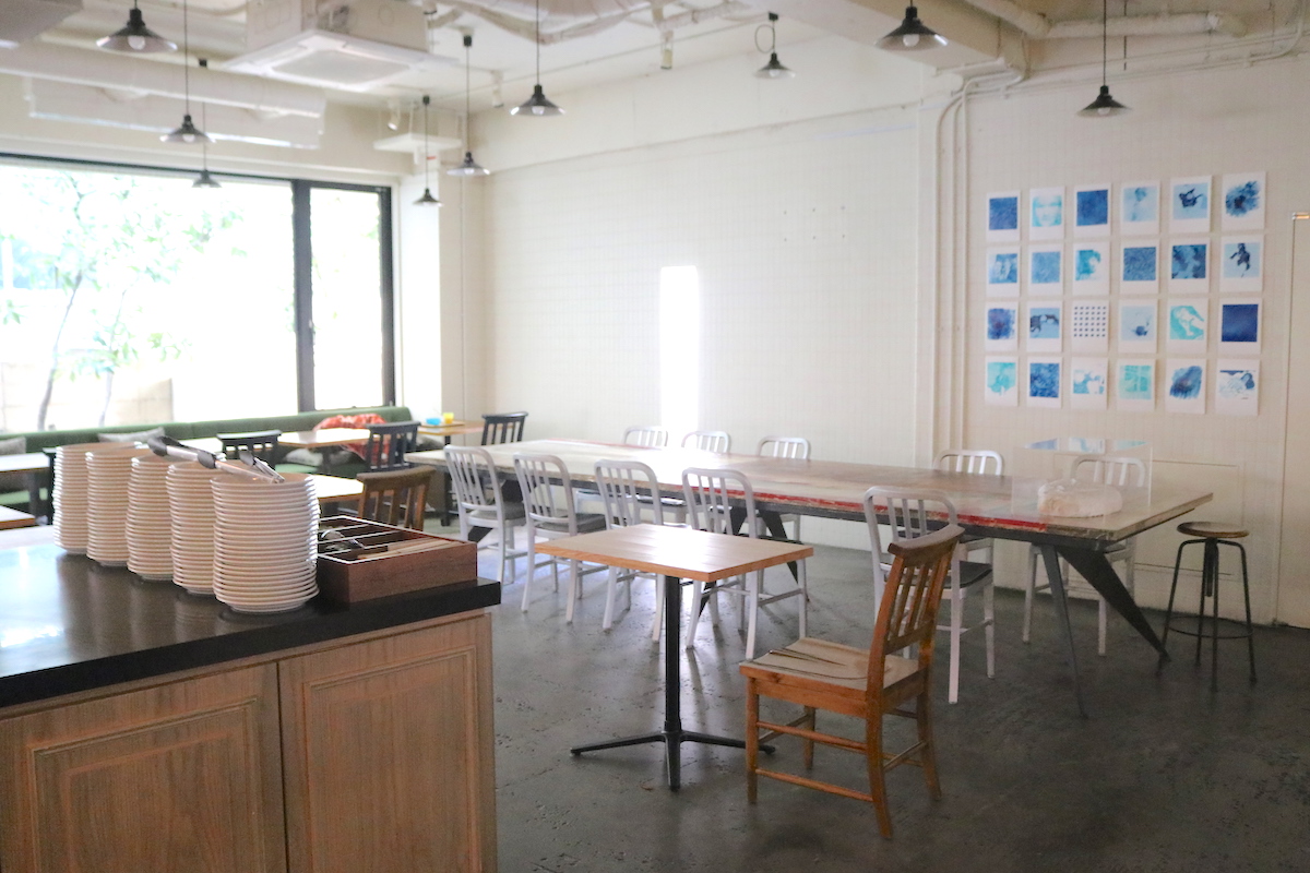 ロビーのコンクリートにも注目を。猫の足跡の刻印はアートとして付け加えたものではなく、学生寮のときからあったもの。なんだか微笑ましい気持ちになりますね。 館内の廊下などいたるところにアート作品が展示され、そのほとんどは購入可能。間近で見て思いを巡らせ、気に入ったらお持ち帰り。そんな気軽なアートの楽しみ方を教えてくれる、魅力的なホテルなのです。