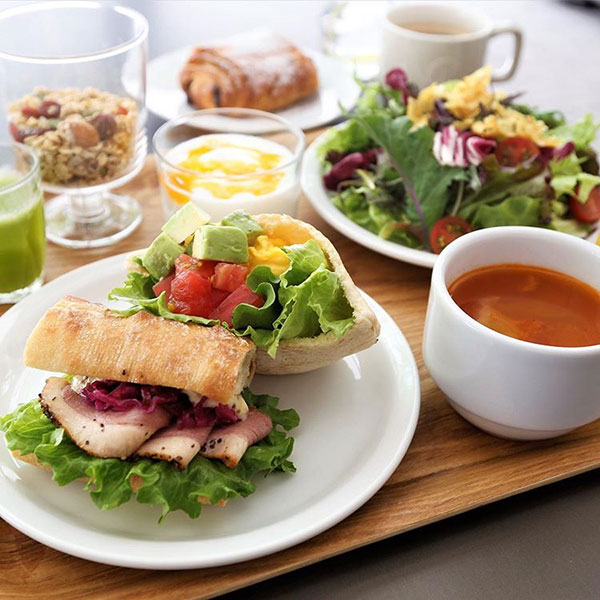 朝食は、朝食専用レストラン「ANTEROOM MEALS(アンテルームミールズ)」で。開放感のある空間で、旬の食材をふんだんに使ったハーフブッフェスタイルの朝食(1000円、11/1以降は1320円)をいただきましょう。