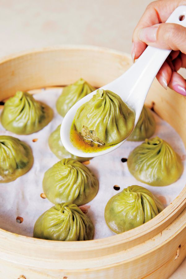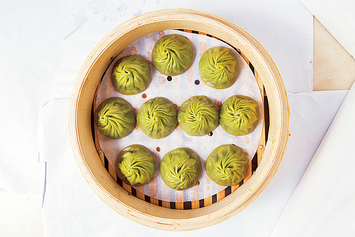 烏龍茶小籠包NT$250(10個)は台湾産の烏龍茶と緑茶の粉末練りこまれています。