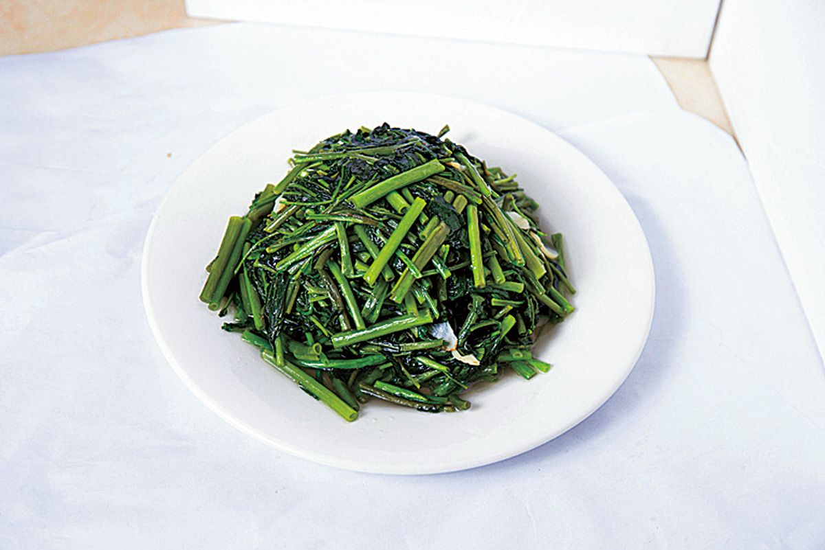 炒空心菜NT$150はあっさりとした味わいのシャキシャキ野菜炒め。
