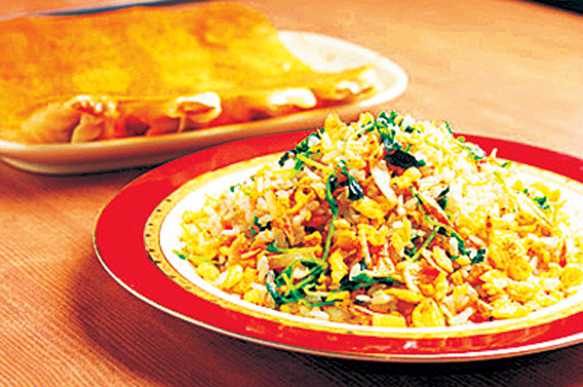 桜花蝦炒飯 NT$200は華やかな桜エビ入り炒飯。シラス入りもありますよ。