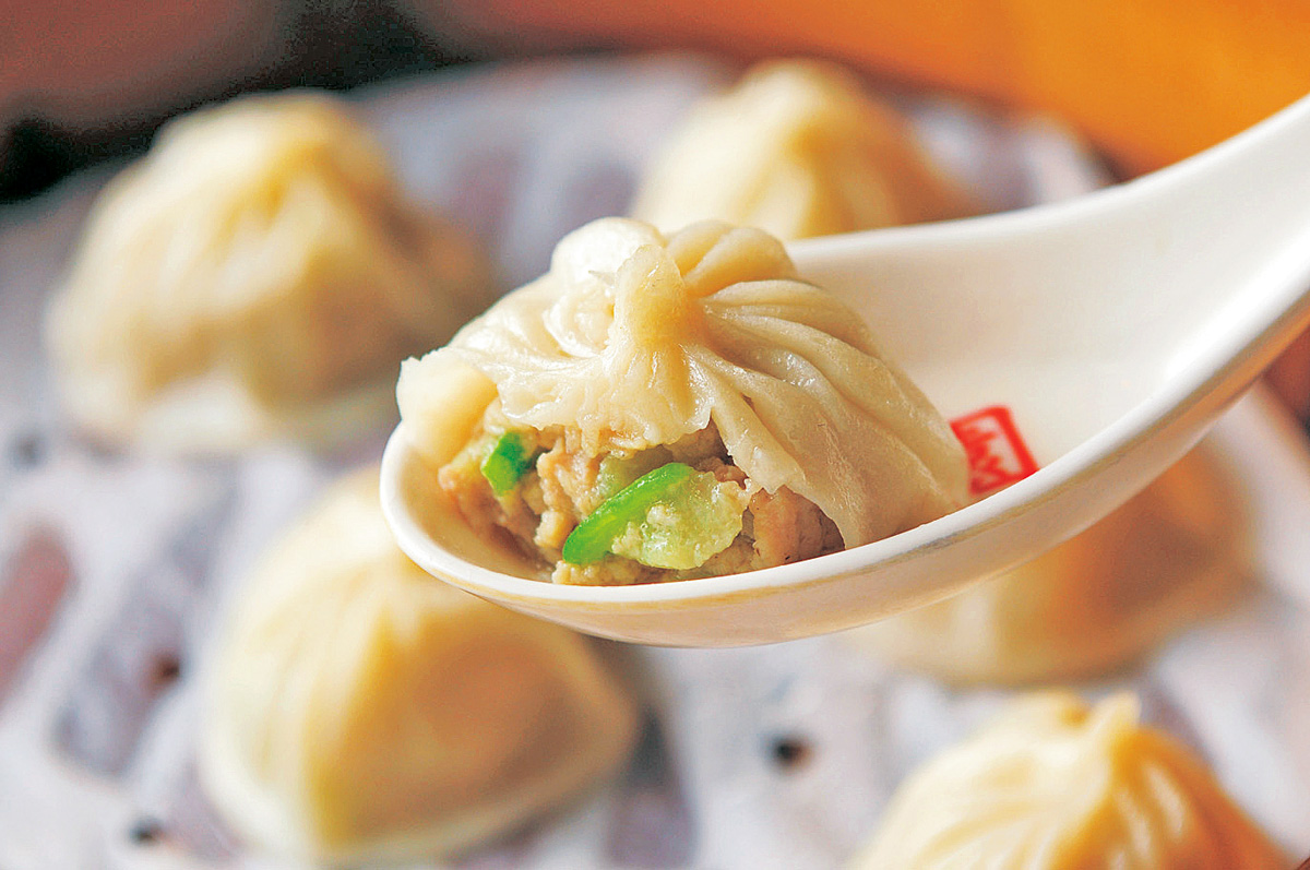 小籠湯包 NT$140(10個)は奥行きのある味を、黒豚のコクとスープが演出。