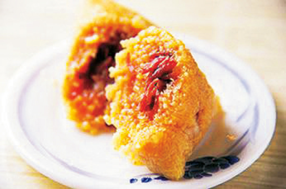 湖州肉粽 NT$65は生のもち米から蒸し上げた豚肉入りチマキ。