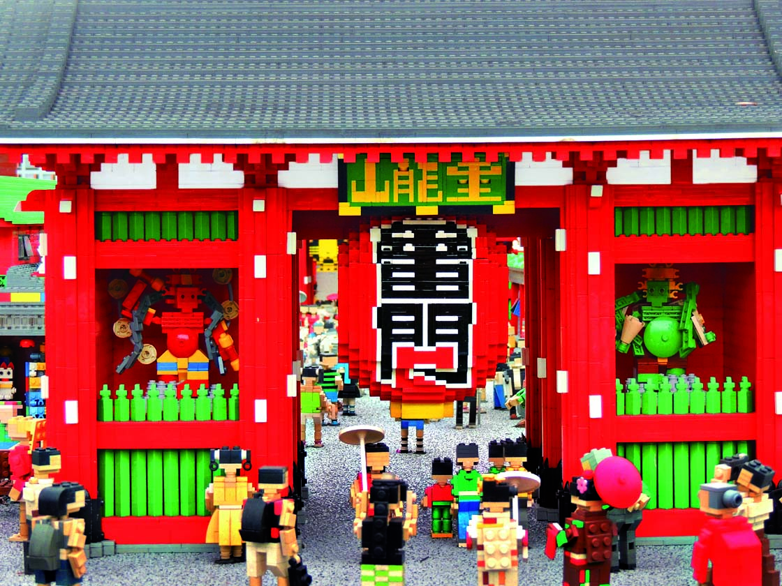 そう、雷門です!雷門を中心に、浅草寺や仲見世など浅草の街並みを再現。雷門で記念撮影する人々や、左右にいる風神雷神にもご注目ください。