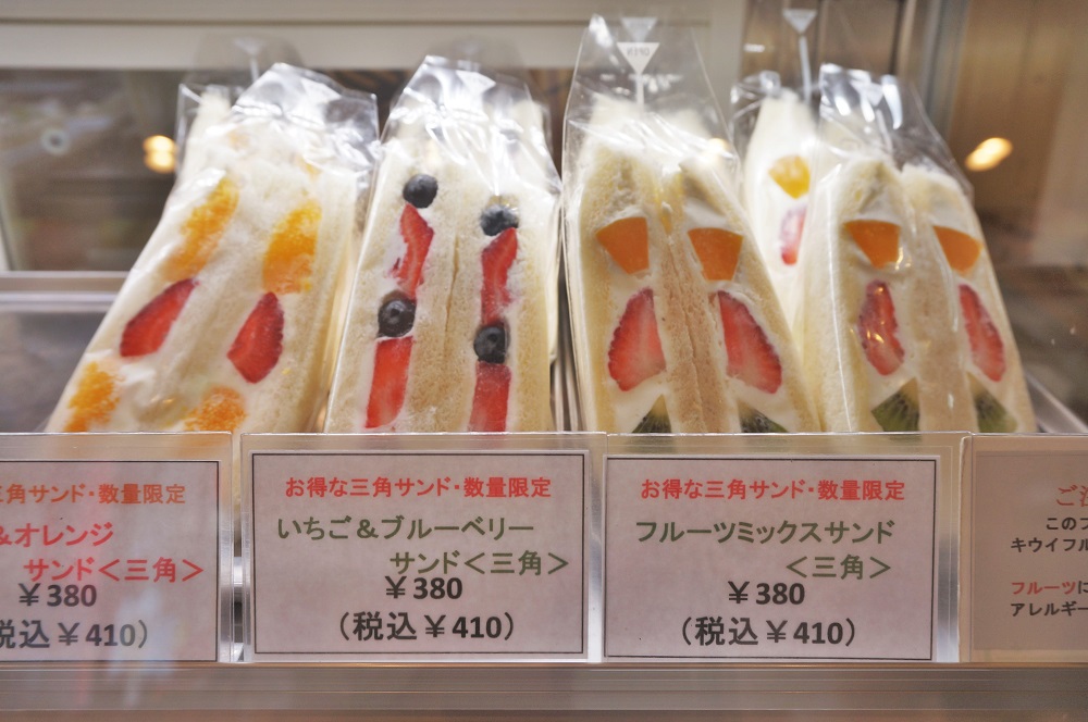 このほかに650円(税別)の「フルーツサンド」も。フルーツサンドは各種お持ち帰りも可能。