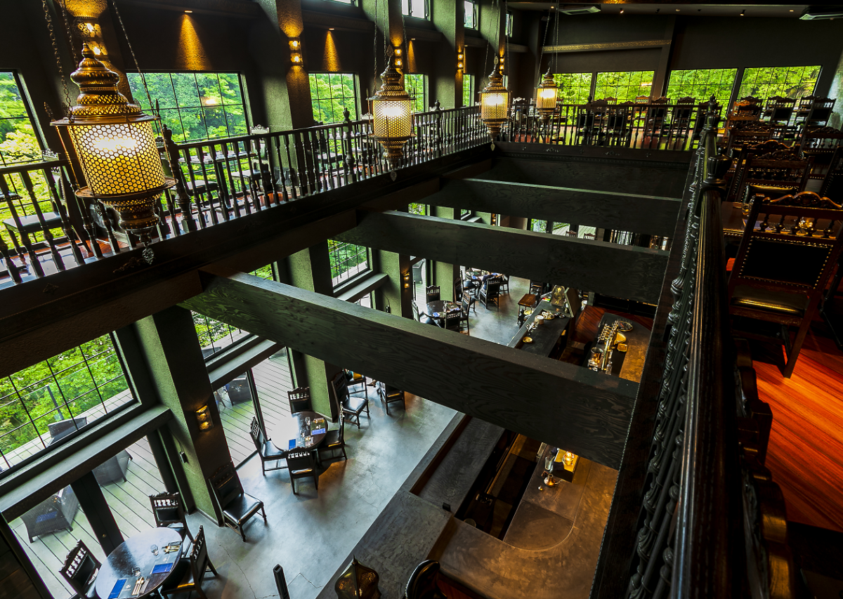 エジプト、トルコから直輸入するランプが照らす、エキゾチックな雰囲気の店内は「アラブ装飾と明治・文明開化期の洋館(西洋建築)の融合」という独自のコンセプトを基に生み出されています。